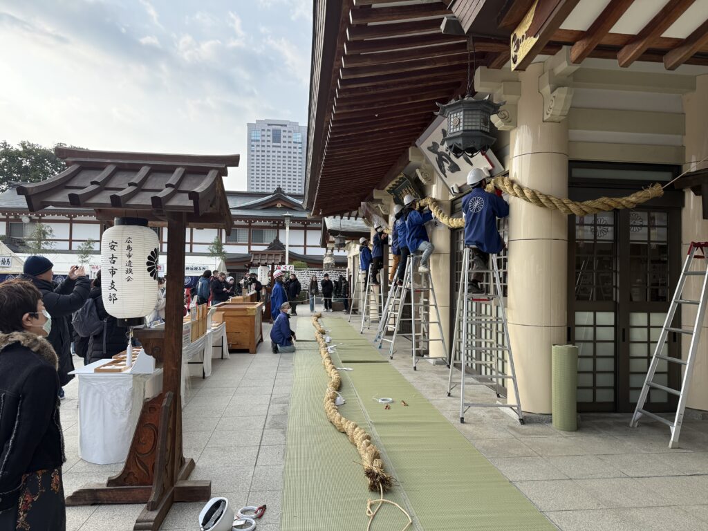 折角なのでその後は護国神社に早参りに行ったのですが、調度しめ縄をやり替えてる所で