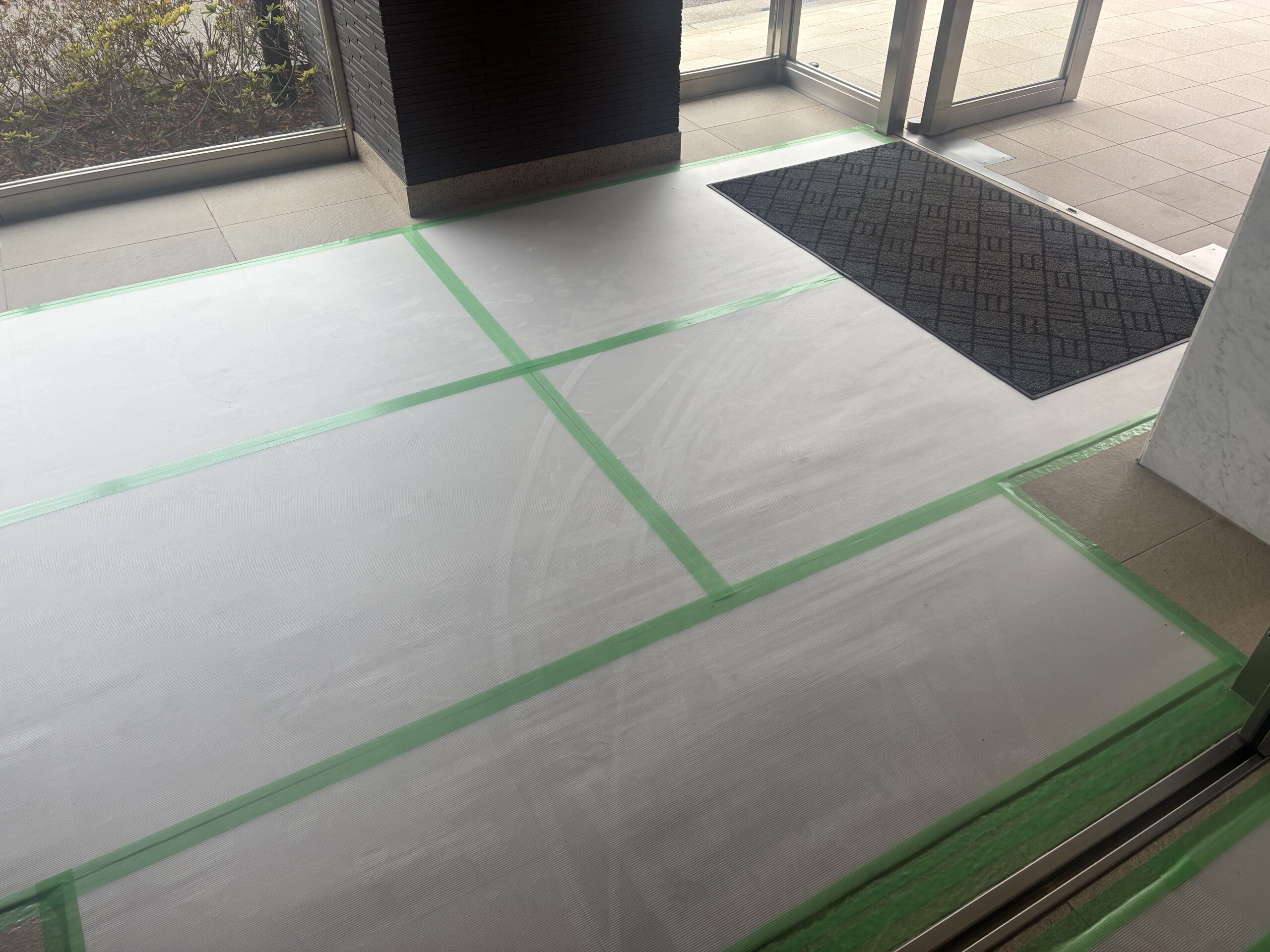 共用部のエントランス、廊下、EVなどは入念に養生をしてスタートします。